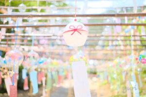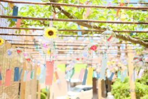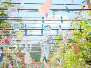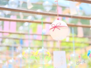 風が吹くと一斉に鳴り響く風鈴の音色は暑さを忘れられるほど美しく、目を離すことのできない光景でした。