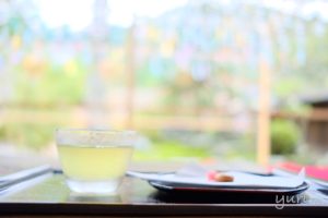 お茶とお菓子がついているので、風鈴の音を聞きながらまずは一休み。