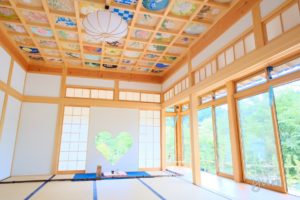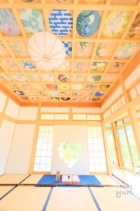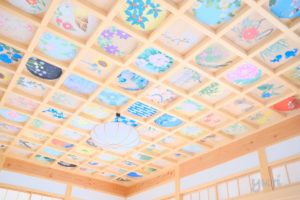 花と日本の風景をテーマに描かれた圧巻の天井画